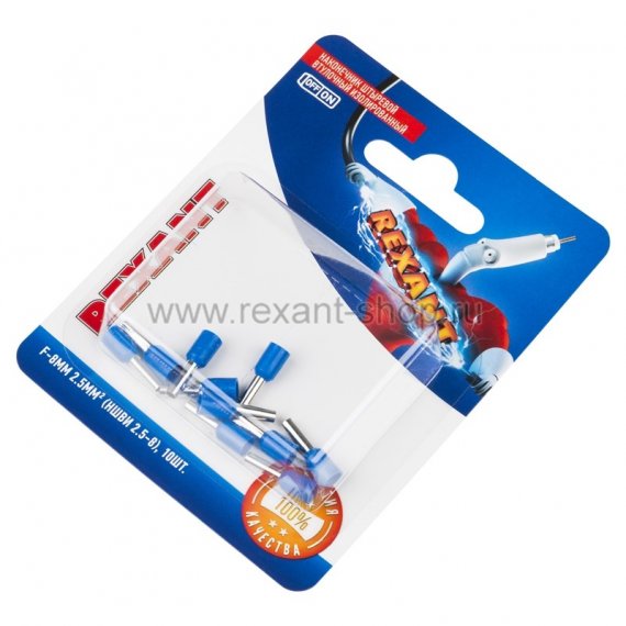 НАКОНЕЧНИК ШТЫРЕВОЙ ВТУЛОЧНЫЙ изолированный F-8мм 2.5мм? (НШВи 2.5-8 / Е 2,5-8 / E2508) синий REXANT (в упак. 10шт.)