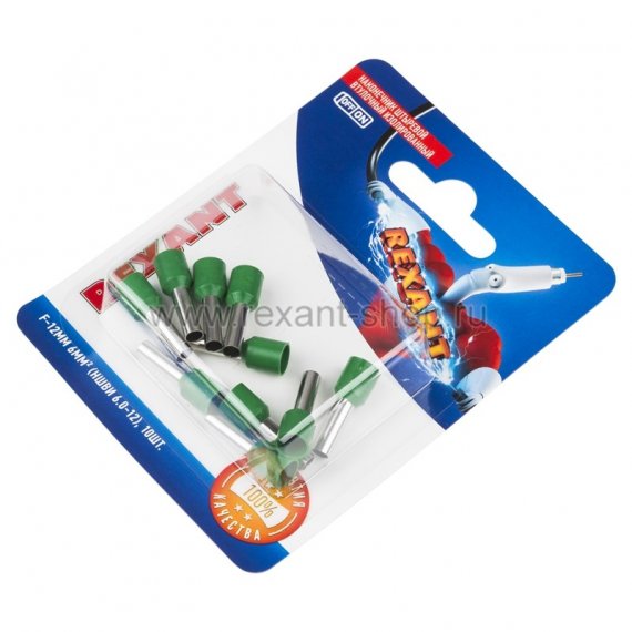 НАКОНЕЧНИК ШТЫРЕВОЙ ВТУЛОЧНЫЙ изолированный F-12мм 6мм? (НШВи 6.0-12 / Е 6,0-12 / E6012) зеленый REXANT (в упак. 10шт.)