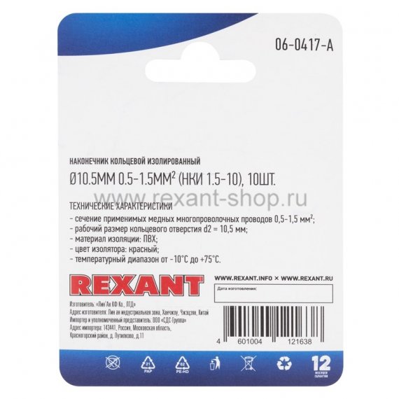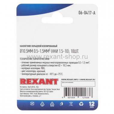 Rexant НАКОНЕЧНИК КОЛЬЦЕВОЙ изолированный 06-0417-A