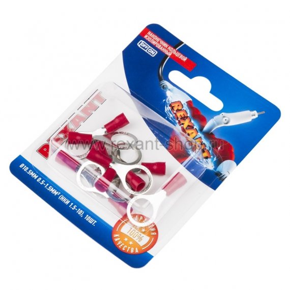 НАКОНЕЧНИК КОЛЬЦЕВОЙ изолированный ?10.5мм 0.5-1.5мм? (НКи 1.5-10 / RV1.25-10) красный REXANT (в упак. 10шт.)
