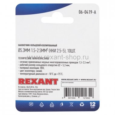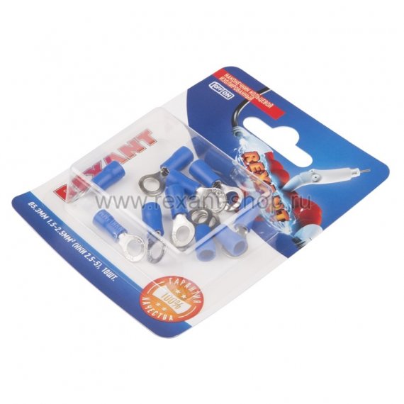 НАКОНЕЧНИК КОЛЬЦЕВОЙ изолированный ?5.3мм 1.5-2.5мм? (НКи 2.5-5 / НКи2-5 / RVS2-5) синий REXANT (в упак. 10шт.)