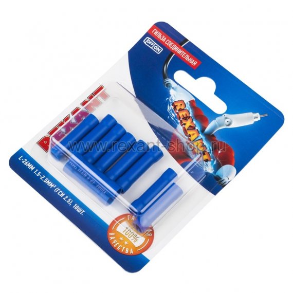 СОЕДИНИТЕЛЬНАЯ ГИЛЬЗА изолированная L-26мм 1.5-2.5мм? (ГСИ 2.5 / ГСИ 1,5-2,5 / BV2) синяя REXANT (в упак. 10шт.)