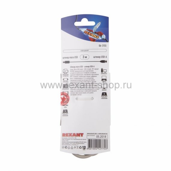 Rexant Шнур micro USB, USB-A 3M 06-3155 Rexant 06-3155