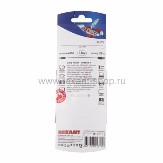 Rexant Шнур mini USB, USB-A 1.8M 06-3156 Rexant 06-3156