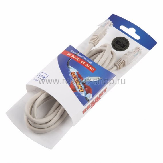 Патч-корд UTP 5e кат. литой 1.5М СЕРЫЙ REXANT предназначен для подключения активного и пассивного сетевого оборудования в составе структурированной кабельной системы, и представляет собой шнур из 4-х пар изолированных проводников, скрученных между собой, находящиеся в общей изоляции с разъемами типа 8P8C. Патч-корд (от англ. patching cord — соединительный шнур) необходим для соединения телекоммуникационного оборудования: компьютеры, офисные АТС, сетевые коммутаторы, концентраторы, коммутационные панели, маршрутизаторы, патч-панели в телекоммуникационных стойках, сетевые карты, а также другого оборудования, имеющего разъемы RJ-45. С обеих сторон шнура располагаются штекеры разъема RJ-45 (8P8C). Полоса пропускаемых частот от 100-125 МГц, что соответствует категории 5е. Главными преимуществами такого патч-корда являются: