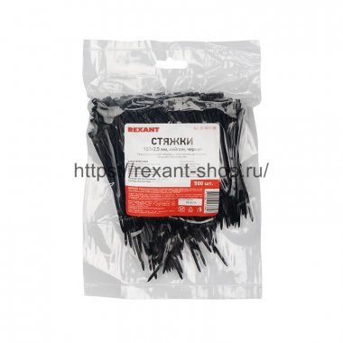 Стяжкa нейлонoвая 100x2,5 мм, черная (упак. 500 шт.) REXANT
