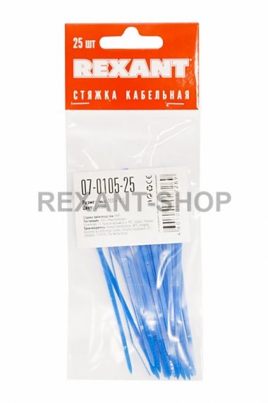 Хомут нейлоновый (кабельная стяжка) 100 х 2.5мм синий REXANT предназначен для крепления или обвязки в жгут кабелей и проводов, крепления гибких гофротруб, а также других предметов к несущей поверхности или для соединения между собой. Такая стяжка используются при проведении электромонтажных работ, при монтаже структурированных кабельных систем, для бытовых нужд, а также в других отраслях народного хозяйства. Представляет собой гибкую полоску из нейлона высокой прочности (полиамид-66) с замком на конце. Полиамид-66 – кристаллизующийся конструкционный материал имеющий высокую твердость и механическую прочность, отличающийся высокими электроизоляционными свойствами. Простой и удобный монтаж осуществляется вручную (следующим образом: большим пальцем левой руки прижать замок к пучку, а правой рукой затягивайте петлю), либо с помощью специального инструмента REXANT арт.12-4521 или 12-4541 (вставить конец затяжки в замок и затянуть до полной фиксации пучка, после чего отрезать выступающую часть бандажа). Не рекомендуется перегибать бандаж при затяжке. Хомуты нейлоновые гарантируют качество, оперативность и экономичность профессионального электромонтажа, обеспечив максимально надежную фиксацию предметов.