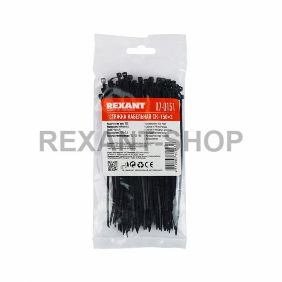 Хомут nylon 3.0 х 150 мм 100 шт черный REXANT