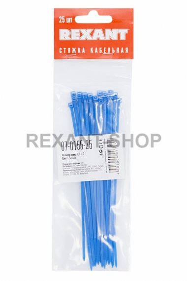 Хомут nylon 150 х 3.0 мм 25шт синий REXANT