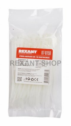 Хомут многоразовый 4.0 x 150 мм 100 шт белый СКМ-150 REXANT