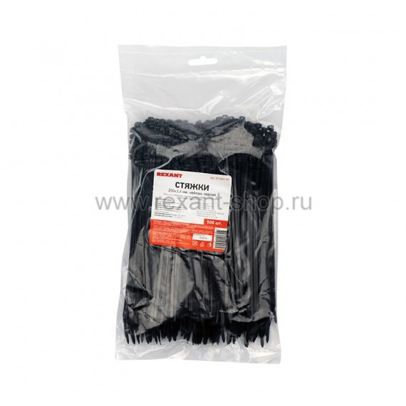 Стяжкa нейлоновая 200x3,6 мм черная (упак. 500 шт.) REXANT