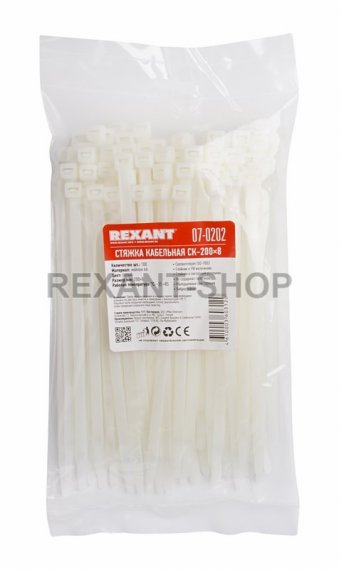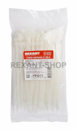 Хомут широкий nylon 8.0 х 200 мм 100 шт белый REXANT