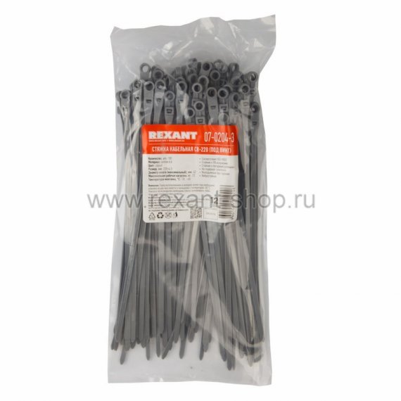 Хомут нейлоновый под винт (кабельная стяжка) REXANT предназначен для крепления или обвязки в жгут кабелей и проводов, крепления гибких гофротруб, а также других предметов к несущей поверхности или для соединения между собой. Такая стяжка используется при проведении электромонтажных работ, при монтаже структурированных кабельных систем, для бытовых нужд, а также в других отраслях народного хозяйства.