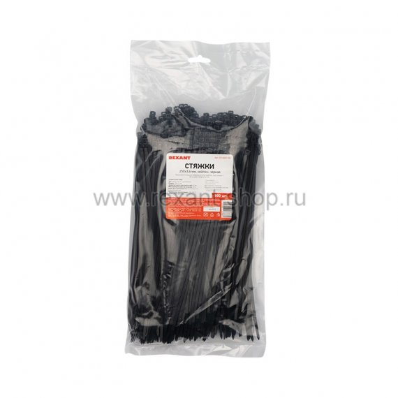 Стяжкa нейлоновая 250x3,6 мм, черная (упак. 500 шт.) REXANT