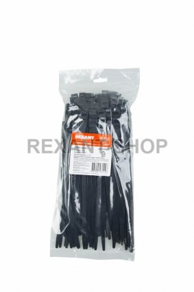 Хомут усиленный с двойным горизонтальным замком nylon 12 260 х 9мм 100 шт черный REXANT