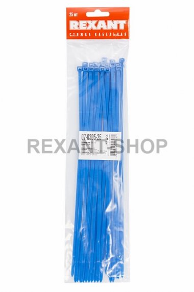 Хомут nylon 300 х 5.0 мм 25шт синий REXANT
