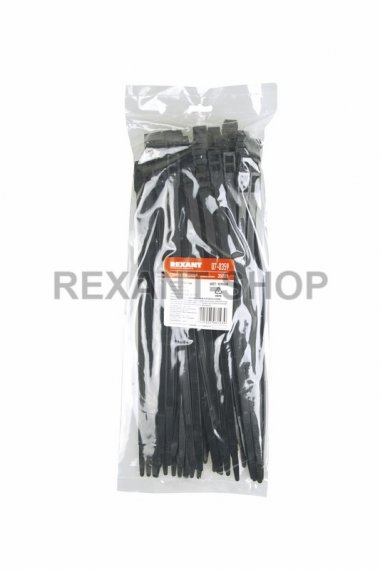 Хомут усиленный с двойным горизонтальным замком nylon 12 350 х 9мм 100 шт черный REXANT