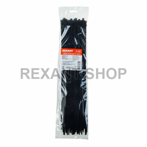 Хомут nylon 5.0 х 400 мм 100 шт черный REXANT