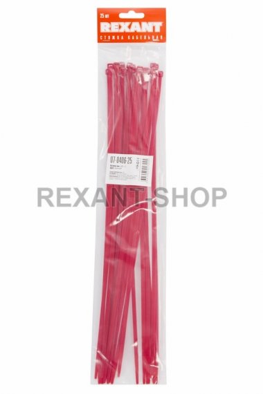 Хомут nylon 400 х 5.0 мм 25шт красный REXANT