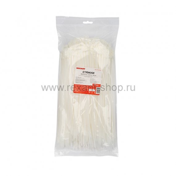 Стяжкa нейлоновая 300x4,8 мм белая (упак. 500 шт.) REXANT