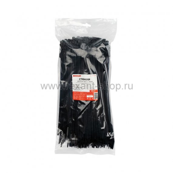 Стяжкa нейлоновая 300x4,8 мм черная (упак. 500 шт.) REXANT