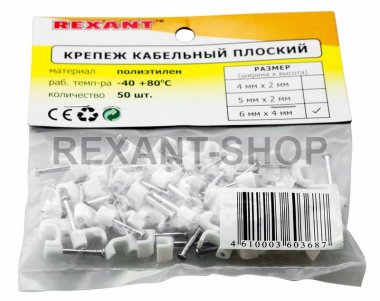 Крепеж кабеля плоский 6мм х 4мм (упак. 50 шт.) REXANT