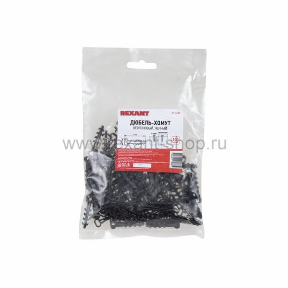 Дюбель-хомут нейлоновый прямоугольный 5-8 мм, черный (упак. 100 шт) REXANT