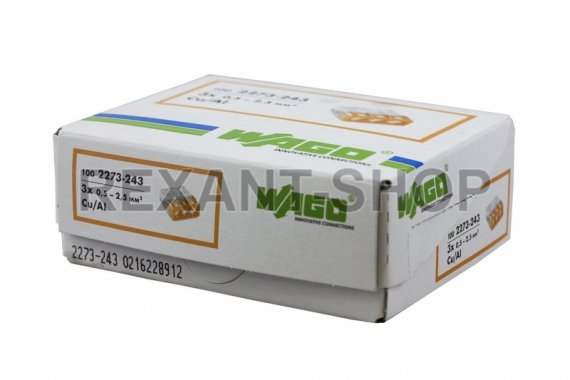 Электромонтажные экспресс-клемы WAGO 2273-243 позволят безопасно и быстро соединить 3 провода между собой (алюминиевые и медные как одножильные, так и многожильные). Достаточно просто вставить жилу кабеля или провода в клемму и самозажимной контакт надежно зафиксирует соединение. Диаметр соединяемых проводов должен составлять в сечении от 0,5 до 2,5 мм2. Удобные тестовые гнезда, прозрачный корпус для визуального контроля и смотровое окно для проверки защиты от касаний делают работу более безопасной. Наличие пасты обеспечивает надёжную изоляцию контакта
