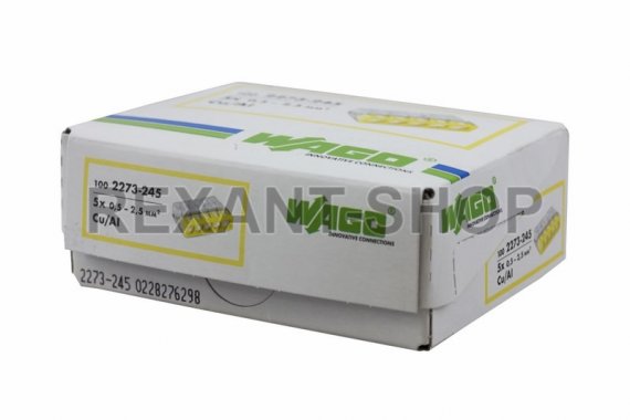 Элетромонтажные экспресс-клемы WAGO 2273-245 позволят безопасно и быстро соединить 5 проводов между собой (алюминиевые и медные как одножильные, так и многожильные). Достаточно просто вставить жилу кабеля или провода в клемму и самозажимной контакт надежно зафиксирует соединение. Диаметр соединяемых проводов должен составлять в сечении от 0,5 до 2,5 мм2. Удобные тестовые гнезда, прозрачный корпус для визуального контроля и смотровое окно для проверки защиты от касаний делают работу более безопасной. Наличие пасты обеспечивает надёжную изоляцию контакта