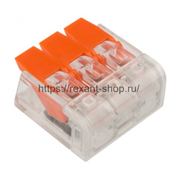 Клемма соединительная рычажковая компактная REXANT 3-проводная, прозрачная, 0.14-4 мм? (20 шт./уп.)