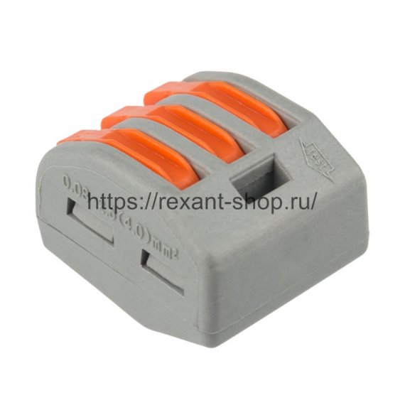 Клемма соединительная многоразовая REXANT 3-проводная, серая, 0.08-4 мм? (20 шт./уп.)