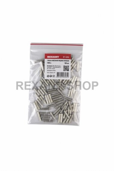 Купить по низким ценам Rexant 07-5352 Описание Rexant 07-5352 Предназначена для соединения встык проводов и кабелей с медными жилами без осевой нагрузки. Изготавливается по ГОСТ 23469.3-79 Гильза имеет сквозную конструкцию