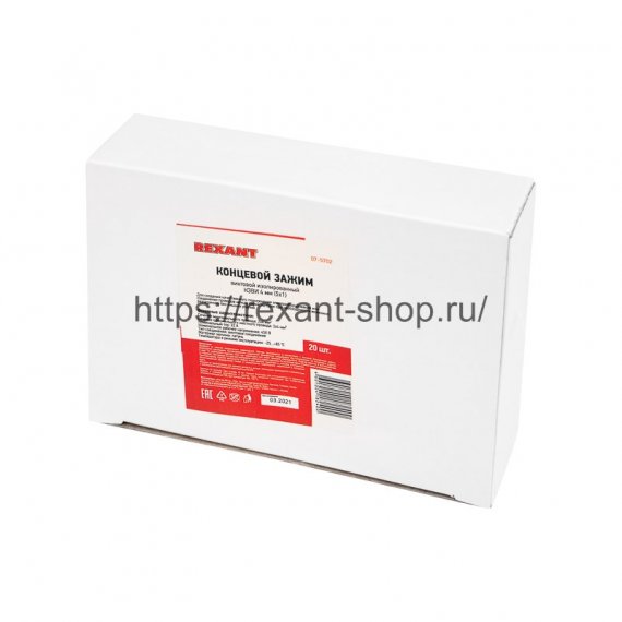 Концевые винтовые изолированные зажимы REXANT предназначены для электрического и механического соединения медных или алюминиевых проводников сечением от 1,5 до 25 мм² в электрической цепи напряжением до 450 В. Применяются для разводки силовых цепей в распределительных коробках и кабельных каналах. Материал контакта – латунь. Материал изолятора – поликарбонат. Материал винтов – оцинкованная сталь.