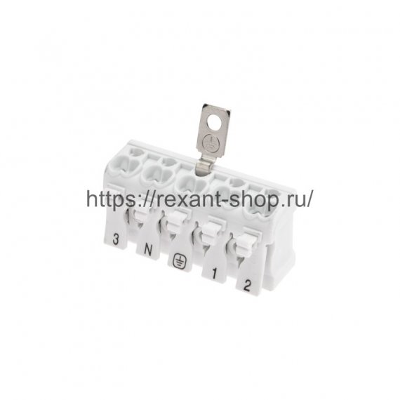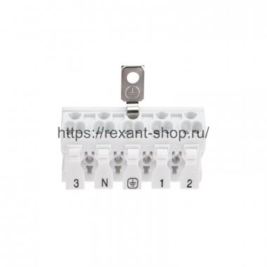 Клемма пружинная соединительная КСП 5-полюсная с заземлением и с монтажными ножками (50 шт./уп.) REXANT