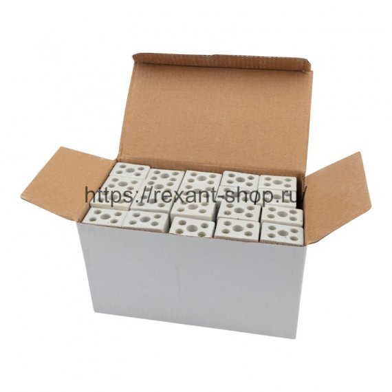 Клемма керамическая винтовая 10 мм? 2 пары контактов с крепежным отверстием (100 шт./уп.) REXANT