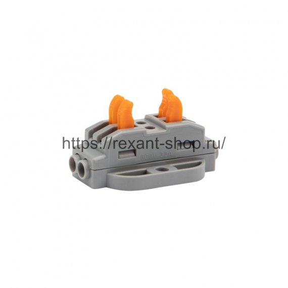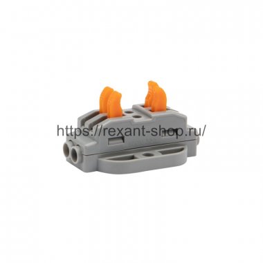 Клемма соединительная многоразовая проходная 2 полюса, с монтажной площадкой (0,08-4 мм?), серая (50 шт./уп.) REXANT