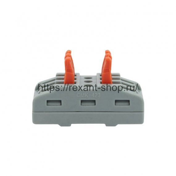 Многоразовые сквозные трехпроводные клеммы REXANT предназначены для соединения медных одножильных и многожильных зачищенных проводников тонкого сечения. Контакт осуществляется путем зажима проводника пластиной. Конструкция предотвращает случайное размыкание контакта. Специальное технологическое отверстие на корпусе клеммы предназначено для проверки соединения тестером-пробником или щупом мультиметра. Корпус из пластика делает контакт изолированным.
