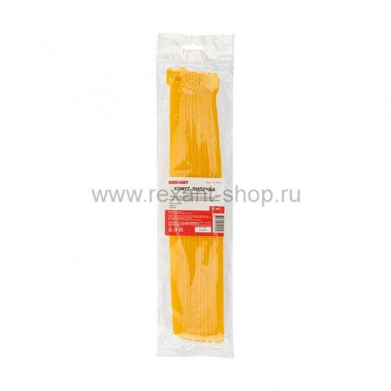 Хомут–липучка многоразовый 320х14 мм, желтый (упак. 12 шт.) REXANT