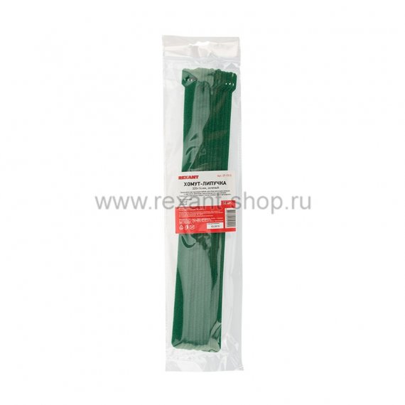 Хомут–липучка многоразовый 320х14 мм, зеленый (упак. 12 шт.) REXANT