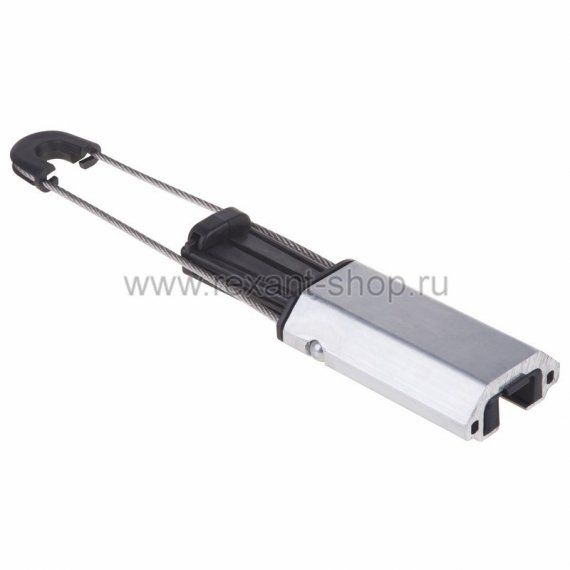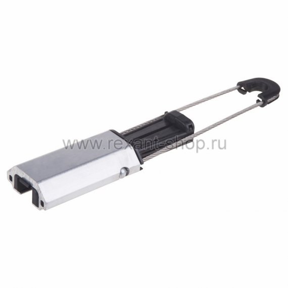 Корпус зажима изготовлен из коррозионностойкого экструдированного алюминиевого сплава, тросик из нержавеющей стали с шаровыми креплениями на обоих концах для удобства надежной фиксации. Внутренняя часть и саморегулирующиеся клинья из армированного диэлектрического пластика, устойчивого к ультрафиолетовому излучению. Не требуется инструмент для монтажа.