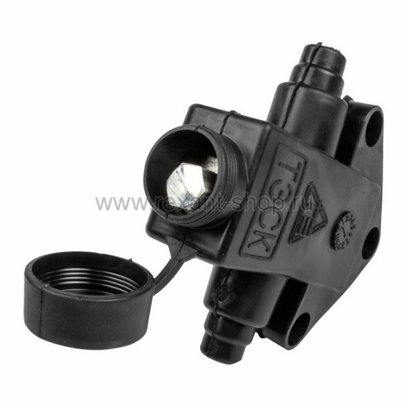 Контроль над усилием затяжки при прокалывании изоляции магистрального провода осуществляется болтом с шестигранной металлической срывной головкой. Крепление ответвленного провода в зажиме осуществляется при помощи болта, которым допускается многократно присоединять и отсоединять абонентские провода без снятия зажима с магистрального провода.
