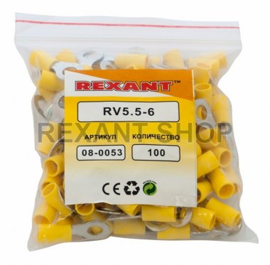 НАКОНЕЧНИК КОЛЬЦЕВОЙ изолированный (НКИ ø6.5мм) 4-6мм² (RV5.5-6, VR5.5-6) REXANT предназначен для создания качественного подключения электрооборудования, которое осуществляется через контактное соединение на основе винтовой фиксации. Такая клемма используется для оконцовывания многожильных медных проводов при монтаже мобильных электрических контактных соединений на подвижном составе (автомобиле-, вагоно-, самолето- и судостроении) или в других местах, где важна надежность соединения (к примеру, телефонное или климатическое оборудование). Изолированный кольцевой наконечник REXANT состоит из двух компонентов: металлического коннектора и защитного изолятора. Металлический коннектор изготовлен из латуни, с поверхностным электролитическим лужением, а изолятор клеммы из поливинилхлорида (ПВХ), который надежно защищает место обжима кабеля. Обжатие производится специальными пресс-клещами (HT-301 H арт.12-3014, 12-3014; HT-301 N арт.12-3117, 12-3016, 12-3016-4; HT-301 W арт.12-3021, 12-3021-4, 12-3121) поверх защитного изолятора. Цвет изолятора желтый. Основные характеристики: