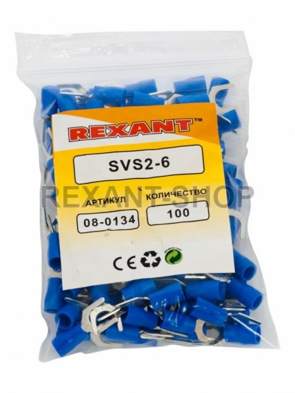 НАКОНЕЧНИК ВИЛОЧНЫЙ изолированный (НВИ - 5.3мм) 1.5-2.5мм² (SVS2-5, VS2-5) REXANT предназначен для создания качественного подключения электрооборудования, которое при необходимости возможно разъединять без полного откручивания крепежного соединения, всего лишь ослабив винтовую фиксацию. Такая клемма используется для оконцовывания многожильных медных проводов при монтаже мобильных электрических контактных соединений на подвижном составе (автомобиле-, вагоно-, самолето- и судостроении) или в других местах, где важна надежность соединения (к примеру, телефонное или климатическое оборудование). Изолированный вилочный наконечник REXANT состоит из двух компонентов: металлического коннектора (вилка) и защитного изолятора, закрывающего место обжима. Металлический коннектор изготовлен из латуни, с поверхностным электролитических лужением (возможно использование в условиях повышенной влажности), а изолятор клеммы из поливинилхлорида (ПВХ), который надежно защищает место обжима кабеля. Температурный диапазон от -10℃ до +75℃. Обжатие производится специальными пресс-клещами (HT-301 H арт.12-3014, 12-3014; HT-301 N арт.12-3116, 12-3117, 12-3016, 12-3016-4; HT-301 W арт.12-3021, 12-3021-4, 12-3121) поверх защитного изолятора. Данная клемма применима для проводов с сечением в диапазоне 1.5-2.5мм². Рабочая ширина штекера d2 = 6.5мм. Цвет изолятора синий. Максимально допустимая величина: пропускаемого тока – 27А. Применение вилочных изолированных наконечников дает возможность существенно ускорять электромонтажные работы, при этом провода многократно отсоединяются и присоединяются к оборудованию.