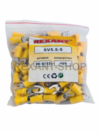 НАКОНЕЧНИК ВИЛОЧНЫЙ изолированный (НВИ - 5.3мм) 4-6мм² (SVS5.5-5, VS5.5-5) REXANT предназначен для создания качественного подключения электрооборудования, которое при необходимости возможно разъединять без полного откручивания крепежного соединения, всего лишь ослабив винтовую фиксацию. Такая клемма используется для оконцовывания многожильных медных проводов при монтаже мобильных электрических контактных соединений на подвижном составе (автомобиле-, вагоно-, самолето- и судостроении) или в других местах, где важна надежность соединения (к примеру, телефонное или климатическое оборудование). Изолированный вилочный наконечник REXANT состоит из двух компонентов: металлического коннектора (вилка) и защитного изолятора, закрывающего место обжима. Металлический коннектор изготовлен из латуни, с поверхностным электролитических лужением (возможно использование в условиях повышенной влажности), а изолятор клеммы из поливинилхлорида (ПВХ), который надежно защищает место обжима кабеля. Температурный диапазон от -10℃ до +75℃. Обжатие производится специальными пресс-клещами (HT-301 H арт.12-3014, 12-3014; HT-301 N арт.12-3117, 12-3016, 12-3016-4; HT-301 W арт.12-3021, 12-3021-4, 12-3121) поверх защитного изолятора. Данная клемма применима для проводов с сечением в диапазоне 4-6мм². Рабочая ширина штекера d2 = 5.3мм. Цвет изолятора желтый. Максимально допустимая величина: пропускаемого тока – 48А. Применение вилочных изолированных наконечников дает возможность существенно ускорять электромонтажные работы, при этом провода многократно отсоединяются и присоединяются к оборудованию.