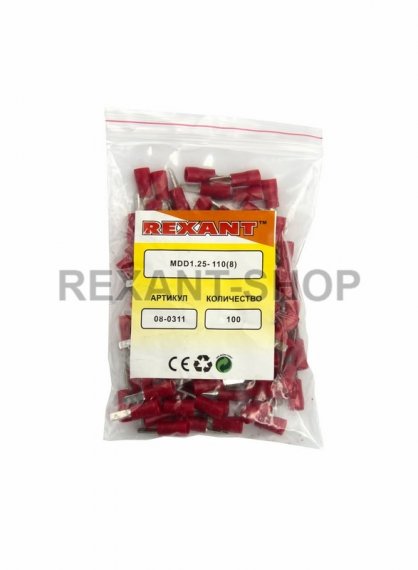 КЛЕММА ПЛОСКАЯ изолированная (КПИ штекер - 2.8мм) 0.5-1.5мм² (VM1.25-110(8)) REXANT предназначена для создания качественного подключения электрооборудования или соединения проводов между собой, которое при необходимости возможно разъединить без лишних усилий. Такая клемма используется для оконцовывания многожильных медных проводов при монтаже мобильных электрических контактных соединений на подвижном составе (автомобиле-, вагоно-, самолето- и судостроении). Изолированная плоская клемма REXANT состоит из двух компонентов: металлического коннектора (штекер) и защитного изолятора. Металлический коннектор изготовлен из латуни, с поверхностным электролитических лужением, а изолятор клеммы из поливинилхлорида (ПВХ), который надежно защищает место обжима кабеля. Обжатие производится специальными пресс-клещами (HT-301 H арт.12-3014, 12-3014; HT-301 N арт.12-3116; HT-301 W арт.12-3021, 12-3021-4) поверх защитного изолятора. Каждая клемма имеет отверстие, служащее фиксатором замкового типа для более прочного механического соединения с гнездовым разъемом. Цвет изолятора красный. Основные характеристики: