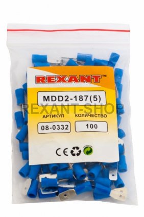 КЛЕММА ПЛОСКАЯ изолированная (КПИ штекер - 6.3мм) 1.5-2.5мм² (MDD2-250, VM2-250) REXANT предназначена для создания качественного подключения электрооборудования или соединения проводов между собой, которое при необходимости возможно разъединить без лишних усилий. Такая клемма используется для оконцовывания многожильных медных проводов при монтаже мобильных электрических контактных соединений на подвижном составе (автомобиле-, вагоно-, самолето- и судостроении). Изолированная плоская клемма REXANT состоит из двух компонентов: металлического коннектора (штекер) и защитного изолятора. Металлический коннектор изготовлен из латуни, с поверхностным электролитических лужением, а изолятор клеммы из поливинилхлорида (ПВХ), который надежно защищает место обжима кабеля. Обжатие производится специальными пресс-клещами (HT-301 H арт.12-3014, 12-3014; HT-301 N арт.12-3116, 12-3117, 12-3016, 12-3016-4; HT-301 W арт.12-3021, 12-3021-4, 12-3121) поверх защитного изолятора. Каждая клемма имеет отверстие, служащее фиксатором замкового типа для более прочного механического соединения с гнездовым разъемом. Цвет изолятора синий. Основные характеристики: