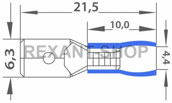 КЛЕММА ПЛОСКАЯ изолированная (КПИ штекер - 6.3мм) 1.5-2.5мм² (MDD2-250, VM2-250) REXANT предназначена для создания качественного подключения электрооборудования или соединения проводов между собой, которое при необходимости возможно разъединить без лишних усилий. Такая клемма используется для оконцовывания многожильных медных проводов при монтаже мобильных электрических контактных соединений на подвижном составе (автомобиле-, вагоно-, самолето- и судостроении). Изолированная плоская клемма REXANT состоит из двух компонентов: металлического коннектора (штекер) и защитного изолятора. Металлический коннектор изготовлен из латуни, с поверхностным электролитических лужением, а изолятор клеммы из поливинилхлорида (ПВХ), который надежно защищает место обжима кабеля. Обжатие производится специальными пресс-клещами (HT-301 H арт.12-3014, 12-3014; HT-301 N арт.12-3116, 12-3117, 12-3016, 12-3016-4; HT-301 W арт.12-3021, 12-3021-4, 12-3121) поверх защитного изолятора. Каждая клемма имеет отверстие, служащее фиксатором замкового типа для более прочного механического соединения с гнездовым разъемом. Цвет изолятора синий. Основные характеристики: