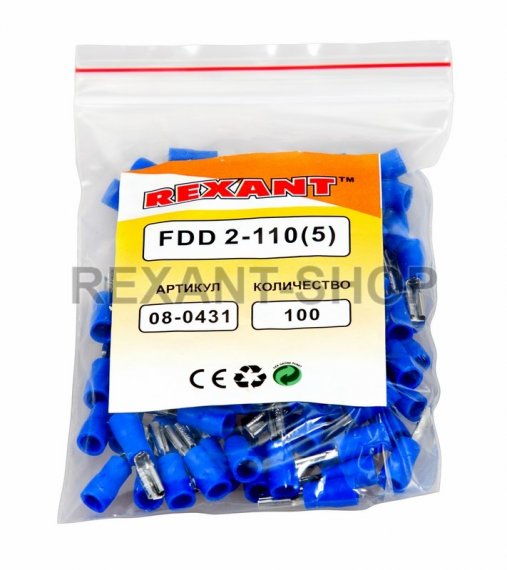 КЛЕММА ПЛОСКАЯ изолированная (КПИ гнездо - 3.8мм) 1.5-2.5мм² (FDD2-110(8), VF2-110(8)) REXANT предназначена для создания качественного подключения электрооборудования или соединения проводов между собой, которое при необходимости возможно разъединить без лишних усилий. Такая клемма используется для оконцовывания многожильных медных проводов при монтаже мобильных электрических контактных соединений на подвижном составе (автомобиле-, вагоно-, самолето- и судостроении). Изолированная плоская клемма REXANT состоит из двух компонентов: металлического коннектора (гнездо) и защитного изолятора. Металлический коннектор изготовлен из латуни, с поверхностным электролитических лужением, а изолятор клеммы из поливинилхлорида (ПВХ), который надежно защищает место обжима кабеля. Обжатие производится специальными пресс-клещами (HT-301 H арт.12-3014, 12-3014; HT-301 N арт.12-3116, 12-3117, 12-3016, 12-3016-4; HT-301 W арт.12-3021, 12-3021-4, 12-3121) поверх защитного изолятора. Каждая клемма имеет фиксатор для более прочного механического соединения с штекерным разъемом. Цвет изолятора синий. Основные характеристики: