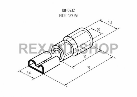 КЛЕММА ПЛОСКАЯ изолированная (КПИ гнездо - 5.6мм) 1.5-2.5мм² (FDD2-187(5), VF2-187(8)) REXANT предназначена для создания качественного подключения электрооборудования или соединения проводов между собой, которое при необходимости возможно разъединить без лишних усилий. Такая клемма используется для оконцовывания многожильных медных проводов при монтаже мобильных электрических контактных соединений на подвижном составе (автомобиле-, вагоно-, самолето- и судостроении). Изолированная плоская клемма REXANT состоит из двух компонентов: металлического коннектора (гнездо) и защитного изолятора. Металлический коннектор изготовлен из латуни, с поверхностным электролитических лужением, а изолятор клеммы из поливинилхлорида (ПВХ), который надежно защищает место обжима кабеля. Обжатие производится специальными пресс-клещами (HT-301 H арт.12-3014, 12-3014; HT-301 N арт.12-3116, 12-3117, 12-3016, 12-3016-4; HT-301 W арт.12-3021, 12-3021-4, 12-3121) поверх защитного изолятора. Каждая клемма имеет фиксатор для более прочного механического соединения с штекерным разъемом. Цвет изолятора синий. Основные характеристики: