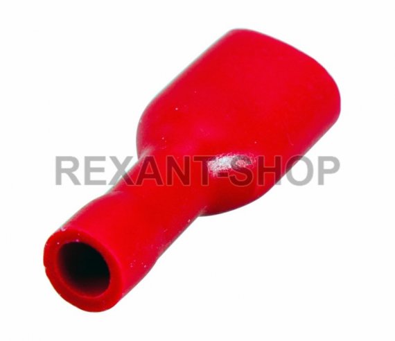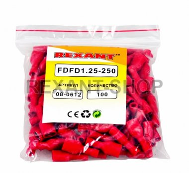 КЛЕММА ПЛОСКАЯ полностью изолированная (КППИ гн - 6.6мм) 0.5-1.5мм² (FDFD1.25-250, VF1.25-250A) REXANT предназначена для создания качественного подключения электрооборудования или соединения проводов между собой, которое при необходимости, возможно разъединить без лишних усилий. Такая клемма используется для оконцовывания многожильных медных проводов при монтаже мобильных электрических контактных соединений на подвижном составе (автомобиле-, вагоно-, самолето- и судостроении) или в других местах, где важна надежность соединения (к примеру, телефонное или климатическое оборудование). Полностью изолированная плоская клемма REXANT состоит из двух компонентов: металлического коннектора (гнездо) и защитного изолятора, полностью закрывающий штекер. Металлический коннектор изготовлен из латуни, с поверхностным электролитическим лужением, а изолятор клеммы из поливинилхлорида (ПВХ), который надежно защищает место обжима кабеля и контактную часть. Цвет изолятора красный. Обжатие производится специальными пресс-клещами (HT-301) поверх защитного изолятора. Каждая клемма имеет фиксатор замкового типа для более прочного механического соединения с штекерным разъемом. Основные характеристики: